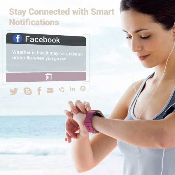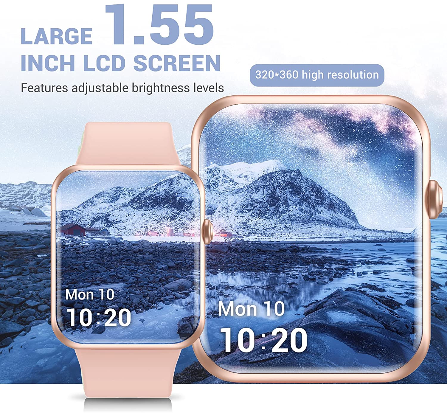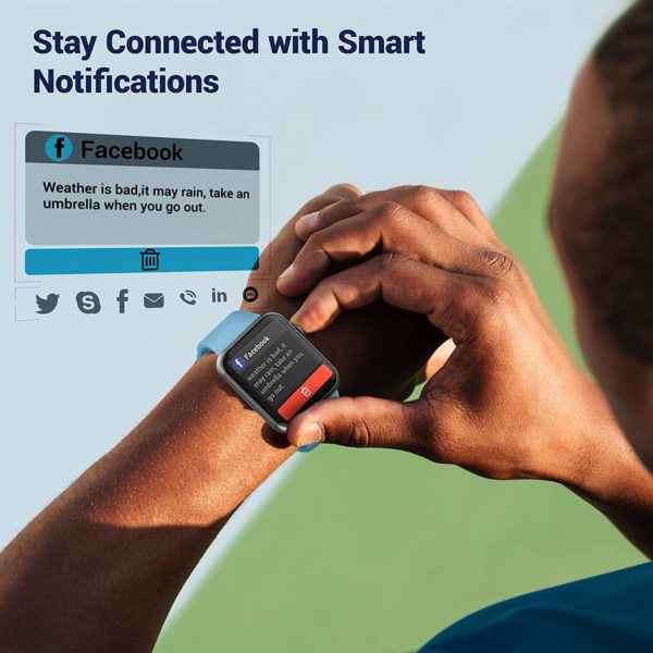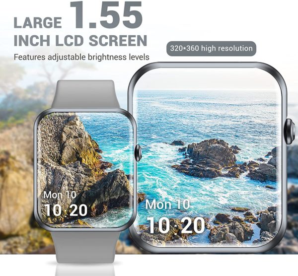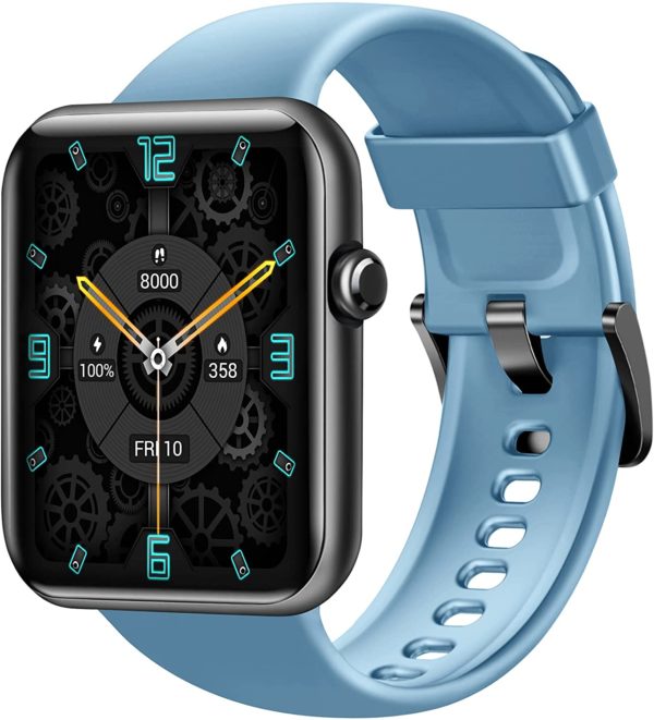Fitniv Smart Watch, 1.55 Inch LCD Color Touch Screen Smartwatch for Android and iOS Phones, Heart Rate Monitor & Sleep Monitor, 5ATM Waterproof Pedometer Fitness Tracker for Men Women, Light Blue