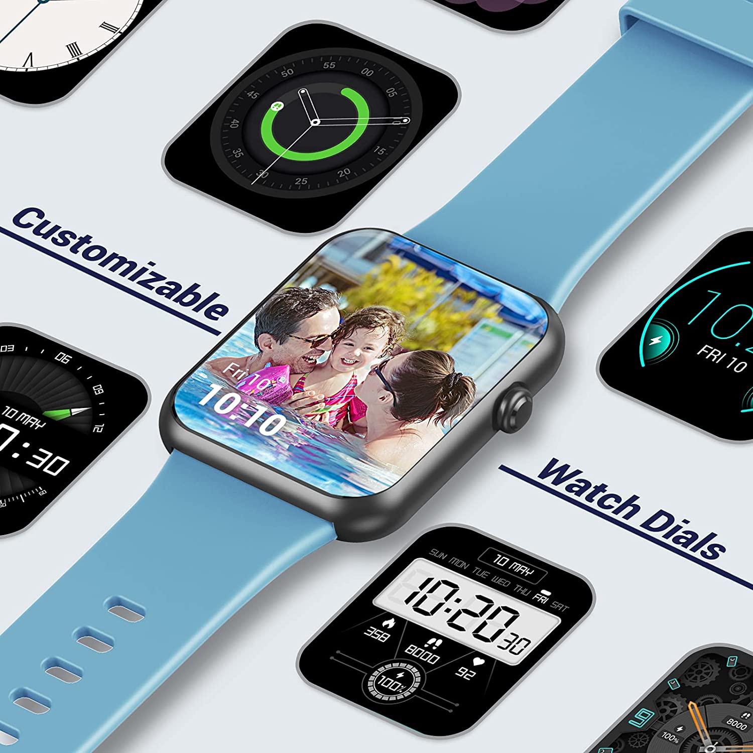 A Hi,The watch has 5 built-in dials (can be replaced when you download a new watch dial in the Fitdock app), and customize watch face also needs to be set in the app.