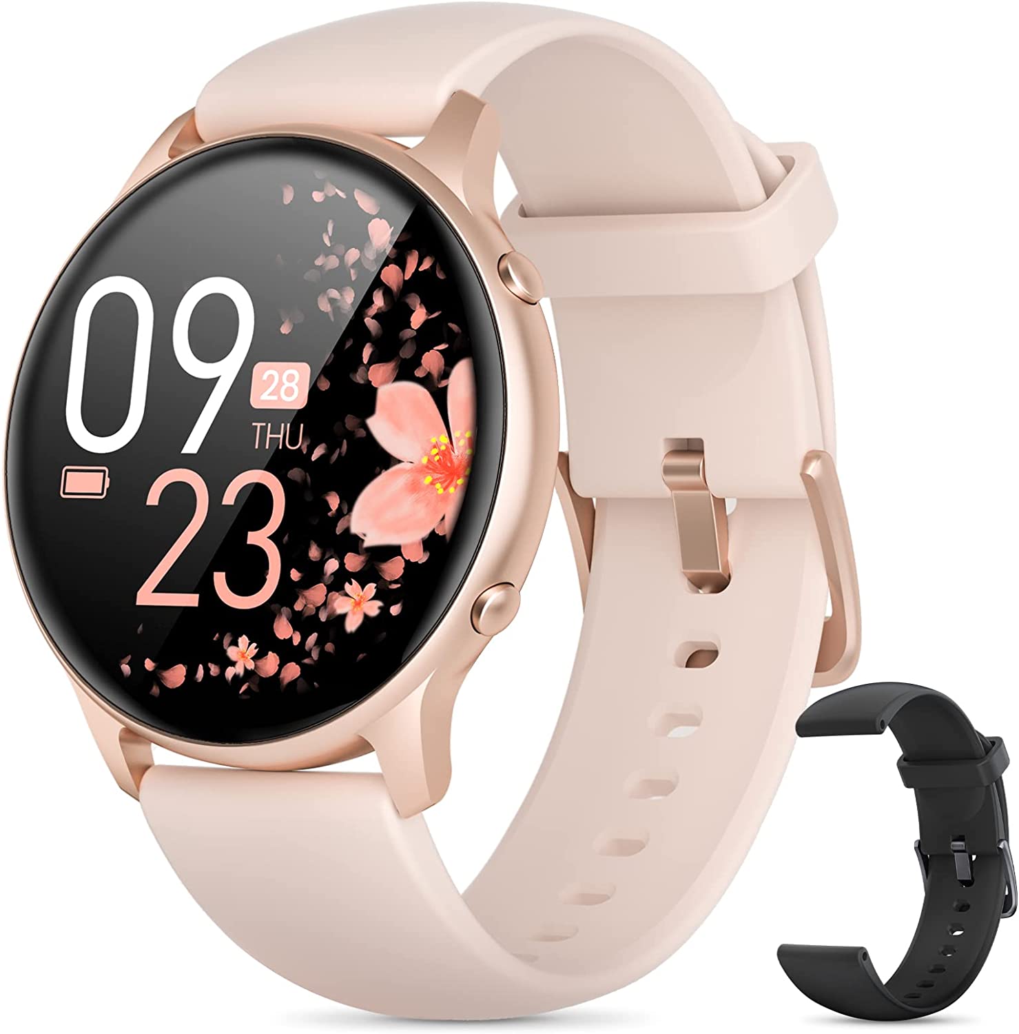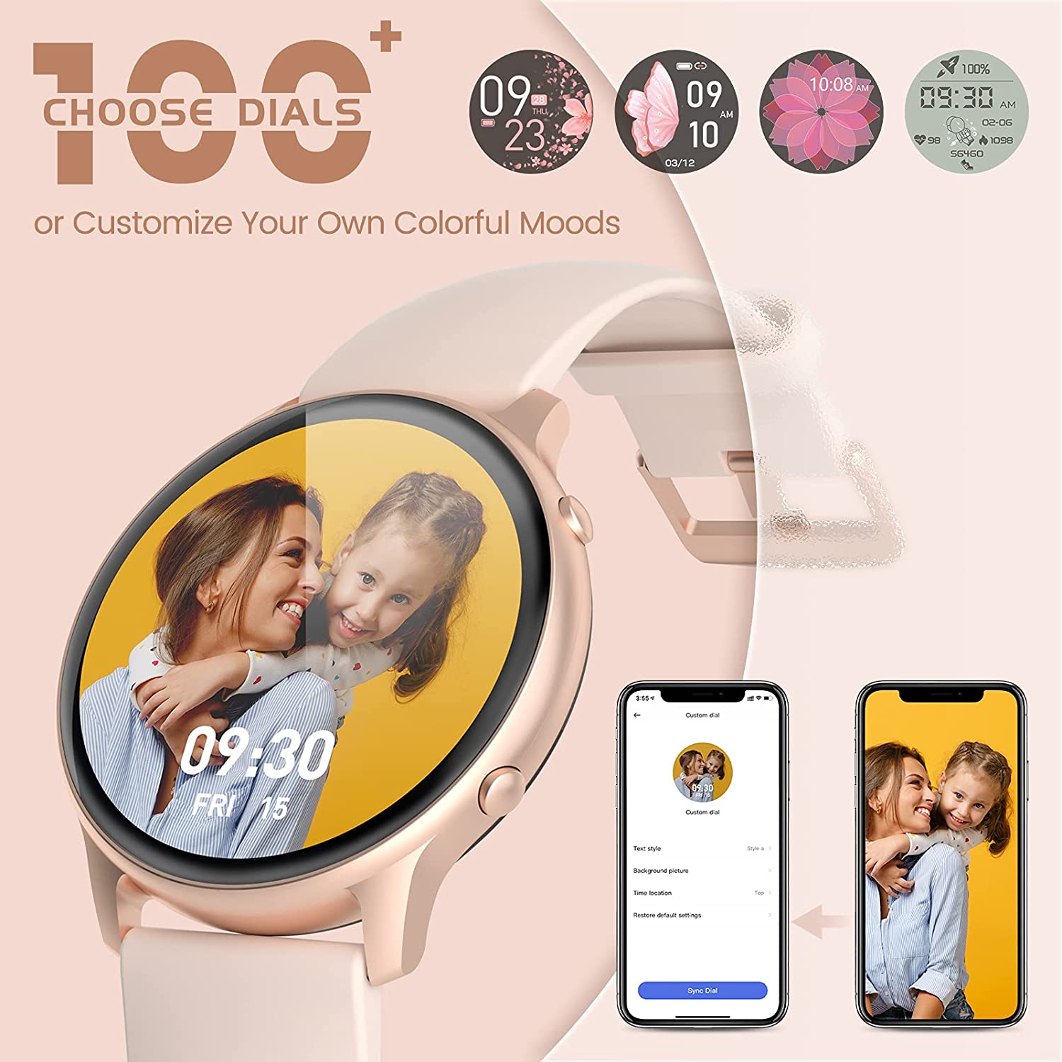 Smart Watches for Women, 2021 HD LCD Smart Watch for Android Phones and iPhone Compatible, 3ATM Waterproof Fitness Smartwatch with Sleep Tracker, Heart Rate, Blood Oxygen Monitor, Smartwatch Rose Gold